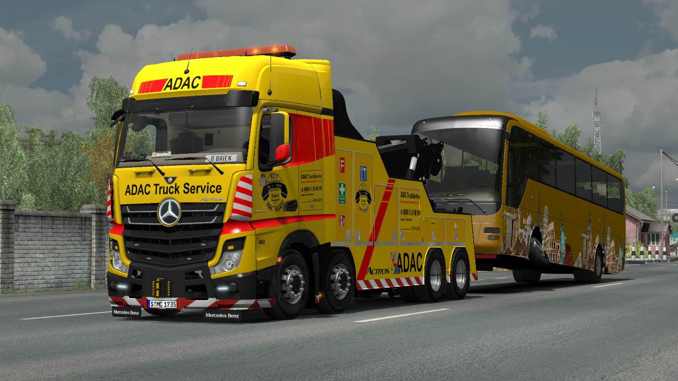 Credits: 1. Mercedes Actros MP4 Crane Truck: CyrusTheVirus (Actualizaciones y mejoras), Laxi (chasis de camión grúa), AU44 (ruedas), Solaris36 (skin), SCS (modelo 3D MB MPIV). 2. Trailer Load Pack for Crane Trucks: CyrusTheVirus (Integración, adaptación de modelos a trailers y mejoras), DragonModz (Autobús Man roto), Seagull (Mercedes Actros roto), SCS (Camión americano roto), RoadHunter (Autobús urbano averiado), in traffic: losevo58 3. Crane Truck Skin ADAC: Buffalo Logistics