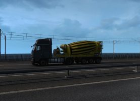 Adds SCS concrete mixer trailer in traffic plus the yellow version in the freight market. STANDALONE MOD.