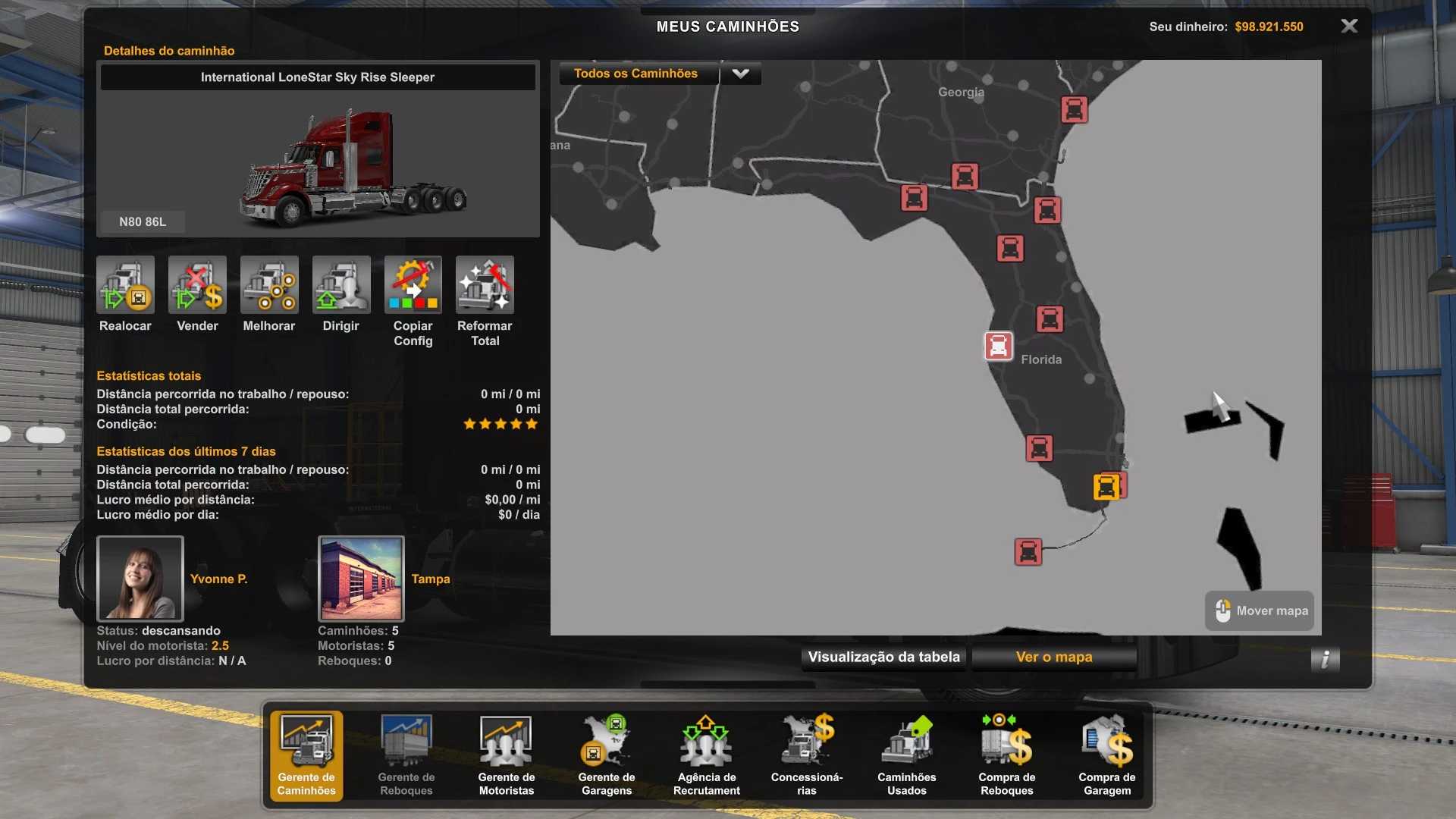 GARAGE 176 TRUCKS 50 DRIVERS 50 MONEY 98.921.550 MAP EXPLORED 0.0%