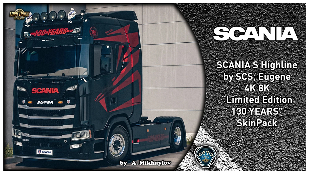 SkinPack “SCANIA Limited Edition 130 YEARS” includes skins for: