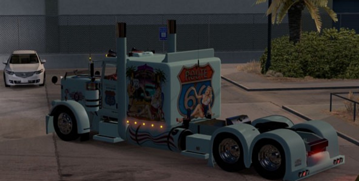 American Truck Simulator Route 66 Flat Top Sleeper 63 skin for Modified Peterbilt 389 1.12 by Viper2