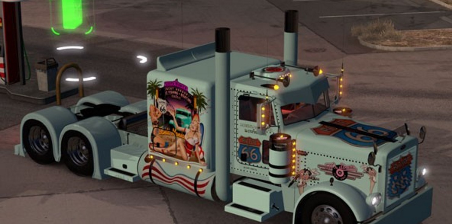 American Truck Simulator Route 66 Flat Top Sleeper 63 skin for Modified Peterbilt 389 1.12 by Viper2