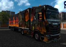 Combo available only for Scania S 2016 Topline cabin and SCS ownable trailers (long trailers only, doubles are skinned simple black), enjoy.