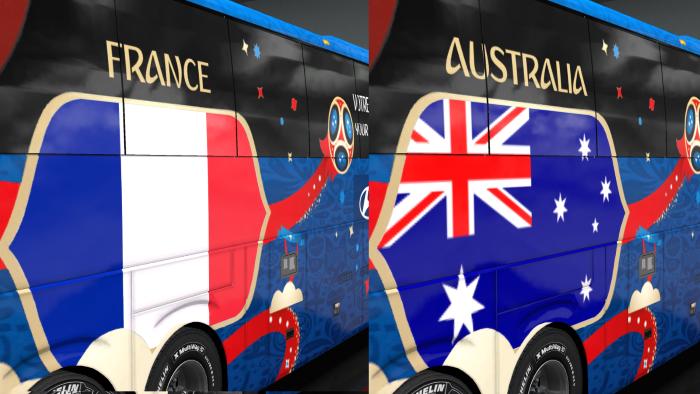 FIFA WORLD CUP 2018 RUSSIA Group C Teams Official Buses Volvo 9800 in Ets 2. There are 4 bus skins: