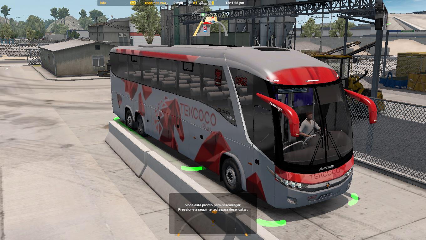 Own interior with animations, mexican bus skins, realistic engine sound, compatible with ATS 1.36.x