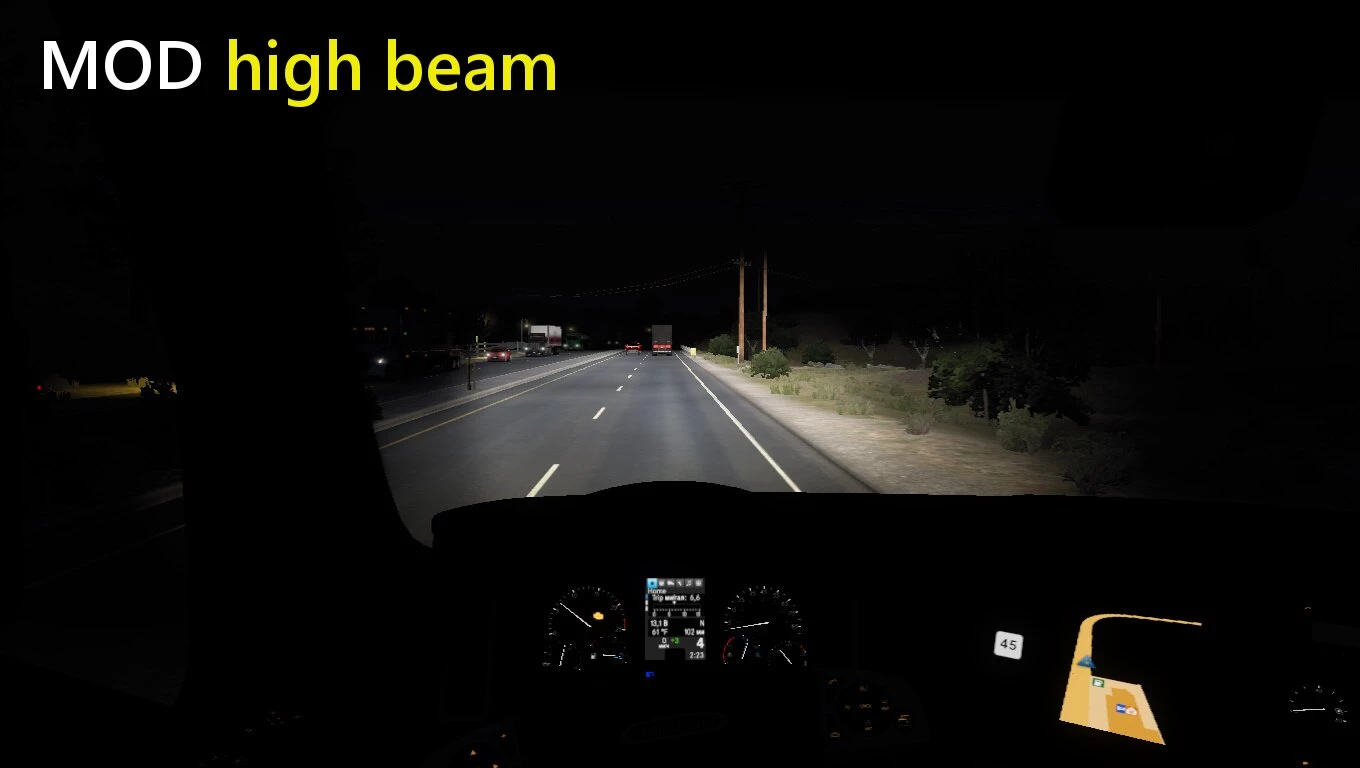 this small addition makes the headlights of all SCS trucks brighter (as in previous versions of the game)