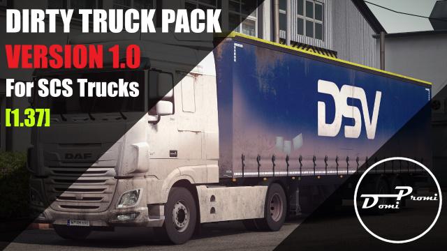 This mod includes dirty skins for SCS Trucks.