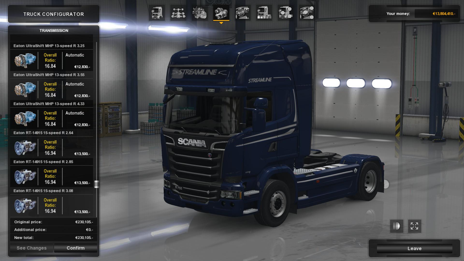 This mod adds 27 different Eaton Fuller transmissions with real specifications into the game providing a grand total of 1080 transmission options to choose from. This includes both manual and automated transmissions.