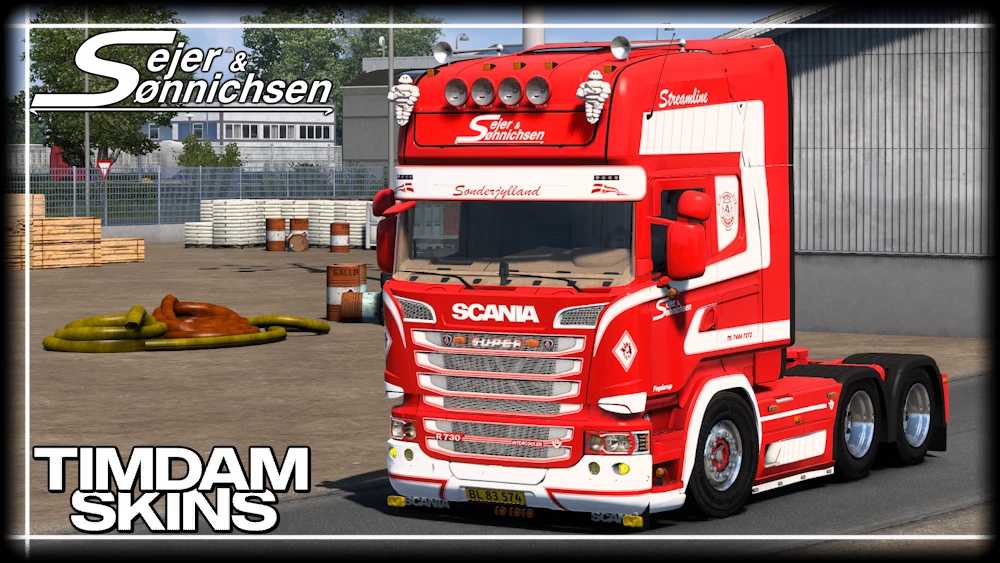 This is a “pack” of Sejer & Sønnichsen AS for JUseeTV´s Scania, it includes two variants, one for the R-Series and one for Streamline! it also includes lightbox and licenceplates.