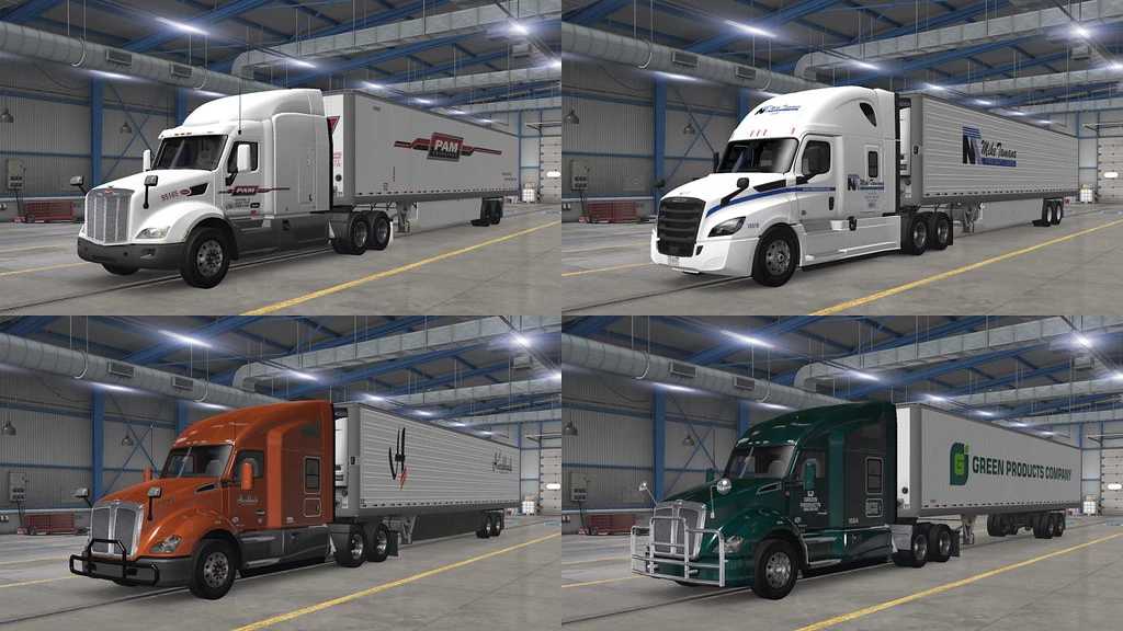 Skins for Freightliner Cascadia 72″ Sleeper RR, Peterbilt 389 Ultra Cab Sleeper, Peterbilt 579 Stand Up and Hi Rise Sleeper, Volvo VNL 780 + 53ft Box Trailer.