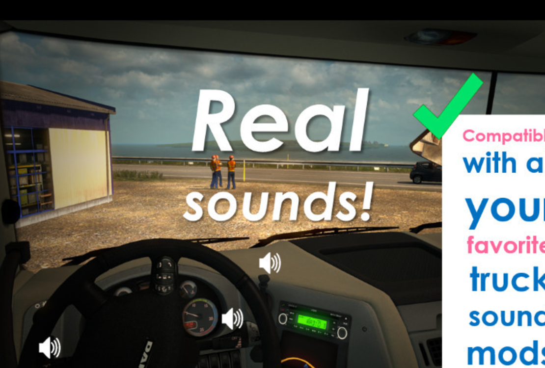 Credits: * SCS Software for base sounds * Drive Safely for pitch, reverberation and sound edits, some sound samples, and for compiling mod * antonvezdehod, Ludmilla and Katixa/Irreo for some tire sounds * Balamut for some key swing and light suspension sounds * AlexeyP for some trailer coupling, gate/barrier and fuel pump sounds, and sounds from Improved Environment Sound * nIGhT-SoN for raindrop definitions