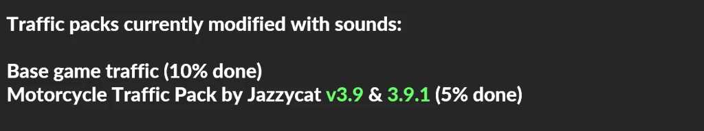 – Improved sounds for some AI traffic vehicles, including sounds for Jazzycat’s Motorcycle Traffic Pack.