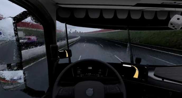 Unlike standard rain mods that focus too much on “clean” glass effects, TM Real Rain aims for pure realism. It simulates the heavy, chaotic nature of real-world rain where water adheres naturally to the windshield, creating realistic distortion and blur that challenges your driving skills. Combined with reworked wheel spray physics, this mod offers a true-to-life atmosphere that feels grounded and intense.