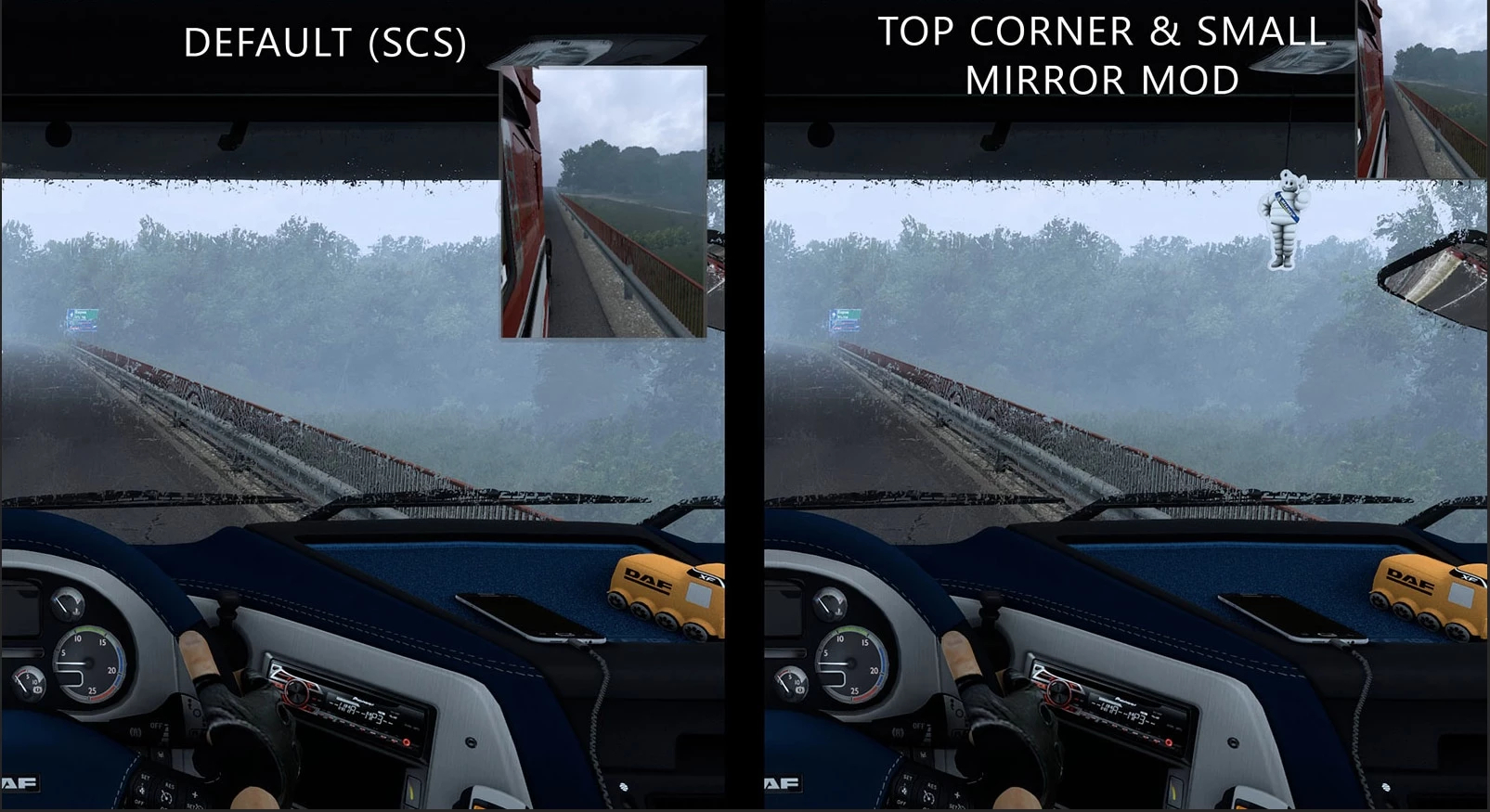 This mod moves the virtual mirrors towards the upper corners and the size is smaller.